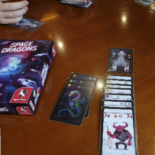 3人でも和やかなのに4~5人はすごいことになりそうでした。スートがなくて、1~80の数字カードを使用で一番高い数字カードをプレイしたらドラゴンを退治できるので、トリックの処理も分かりやすいくて、アイコンだけ慣れてきたらスムーズかな。