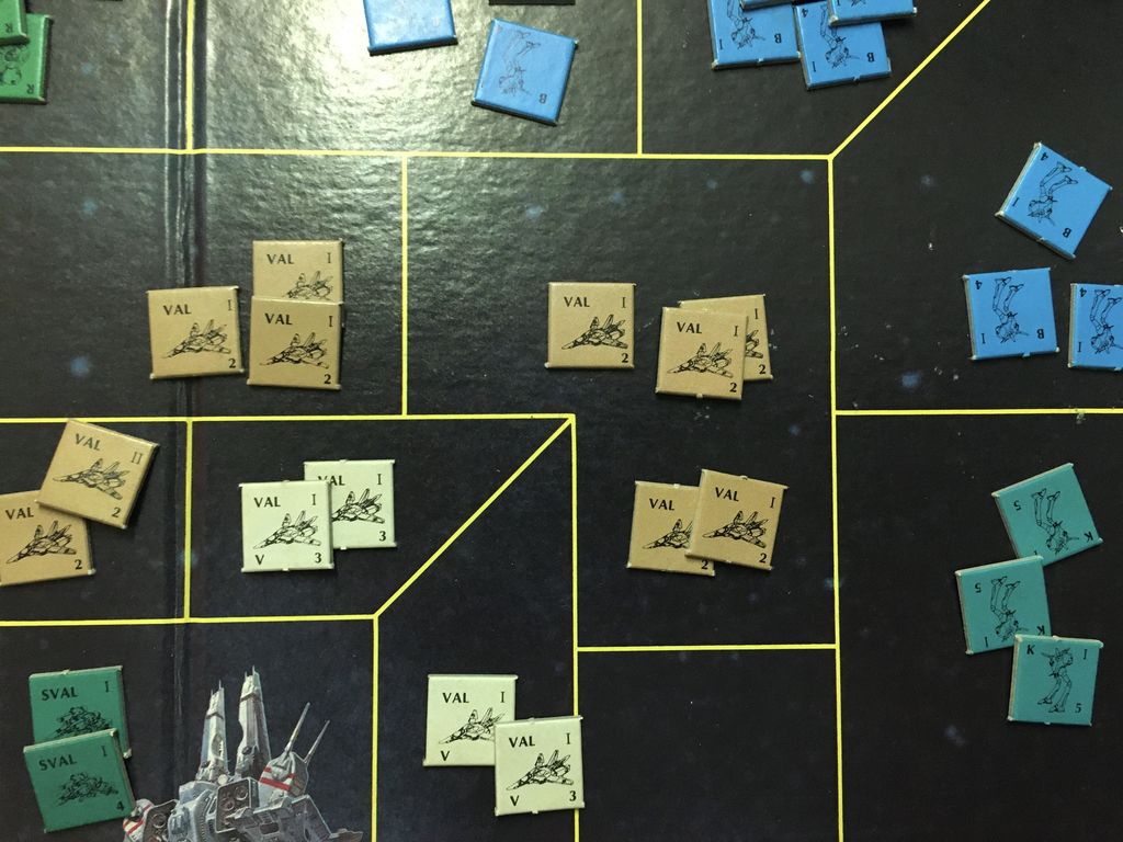 さらにちょっとひねりが入っており、航続距離等の影響で、バルキリーは10ターン。ゼントラーディ軍は8ターンの間しか活動できないため、互いに第2陣を投入するルールになっており、その内容やタイミングは互いに密かに決定しておくのです。