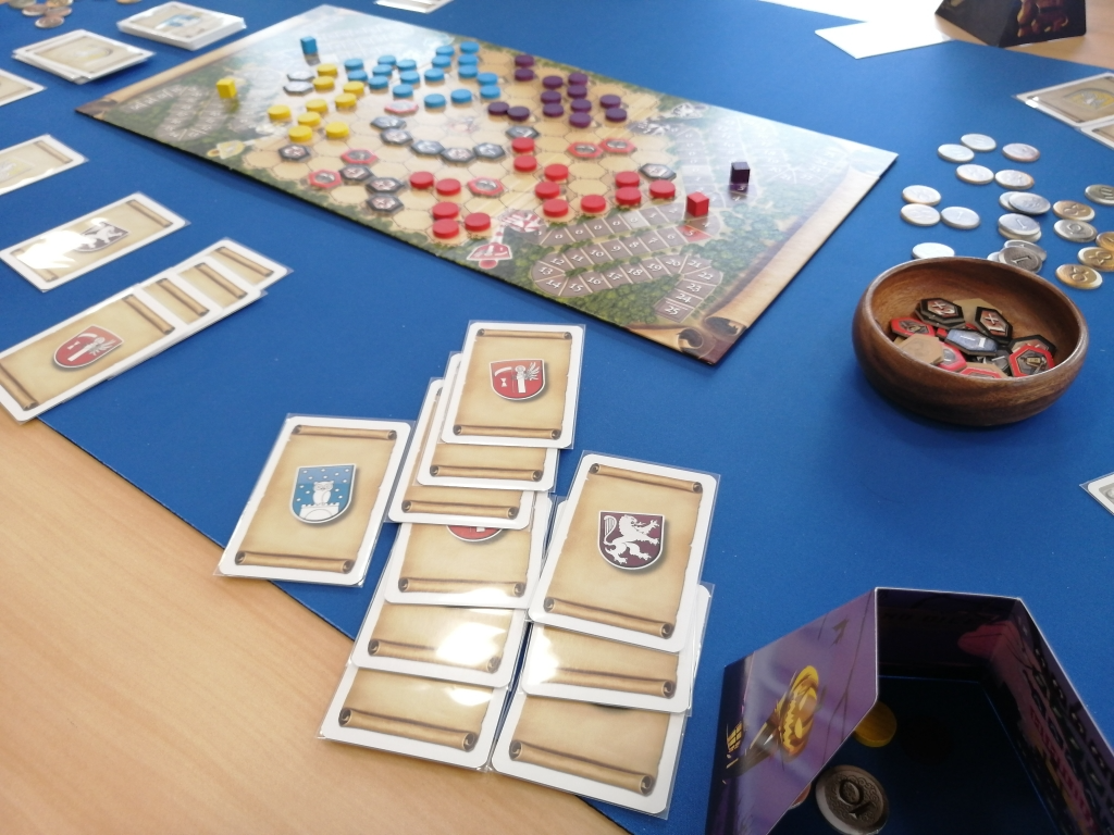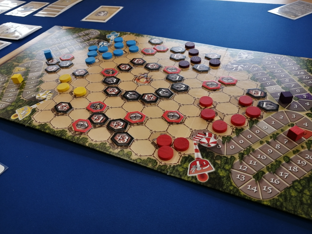 手番では団員を推すか引くかをしたり、チップを3枚配置をします。
