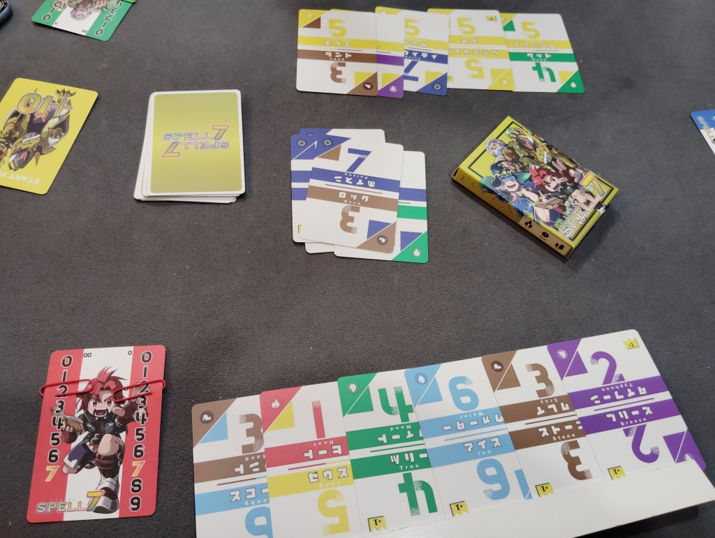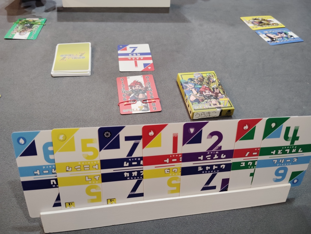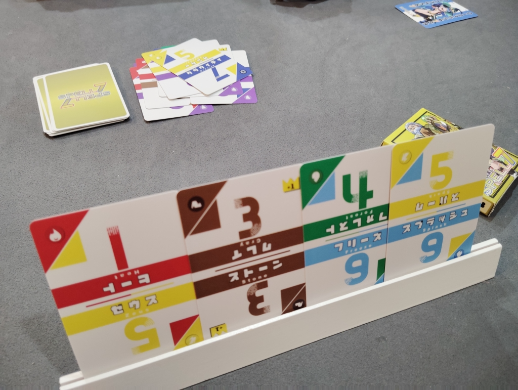 場にある呪文カードの数字のどちらかに合う呪文カードをプレイしていき、手番開始時に片側の数字が1種類で揃っていれば呪文を唱えることができます。
