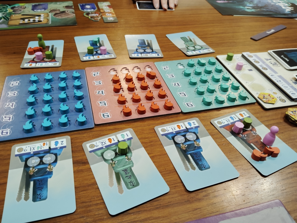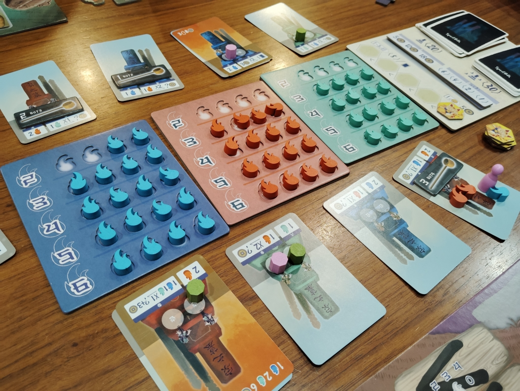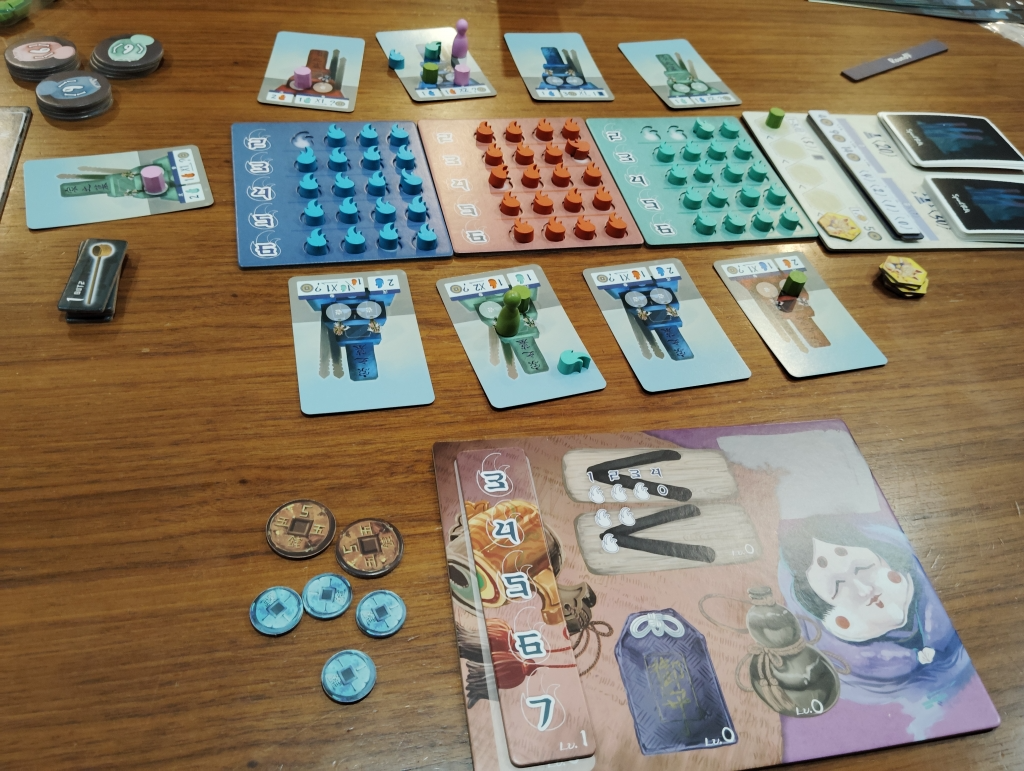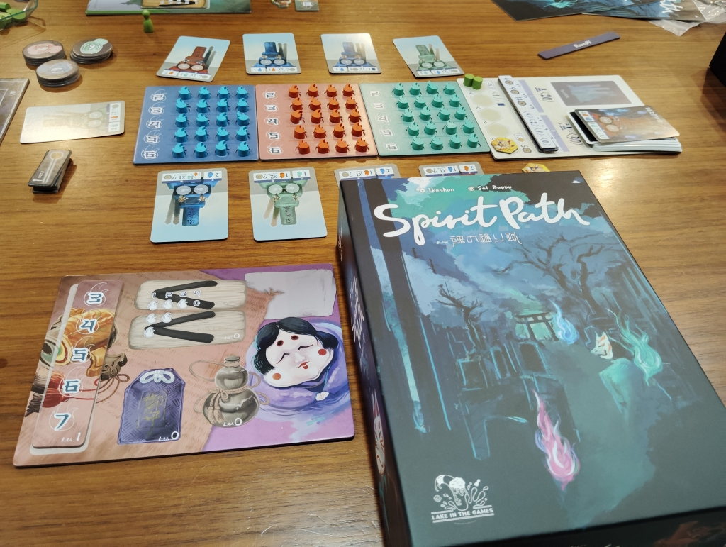 ゲーム自体は2人で4ラウンド1時間半〜2時間(説明込み)でしたが、ゲーム終了条件がお参りだったり夜の墓が数枚建設されたらだったので、プレイヤー次第ではラウンドが早まることもあるかな。