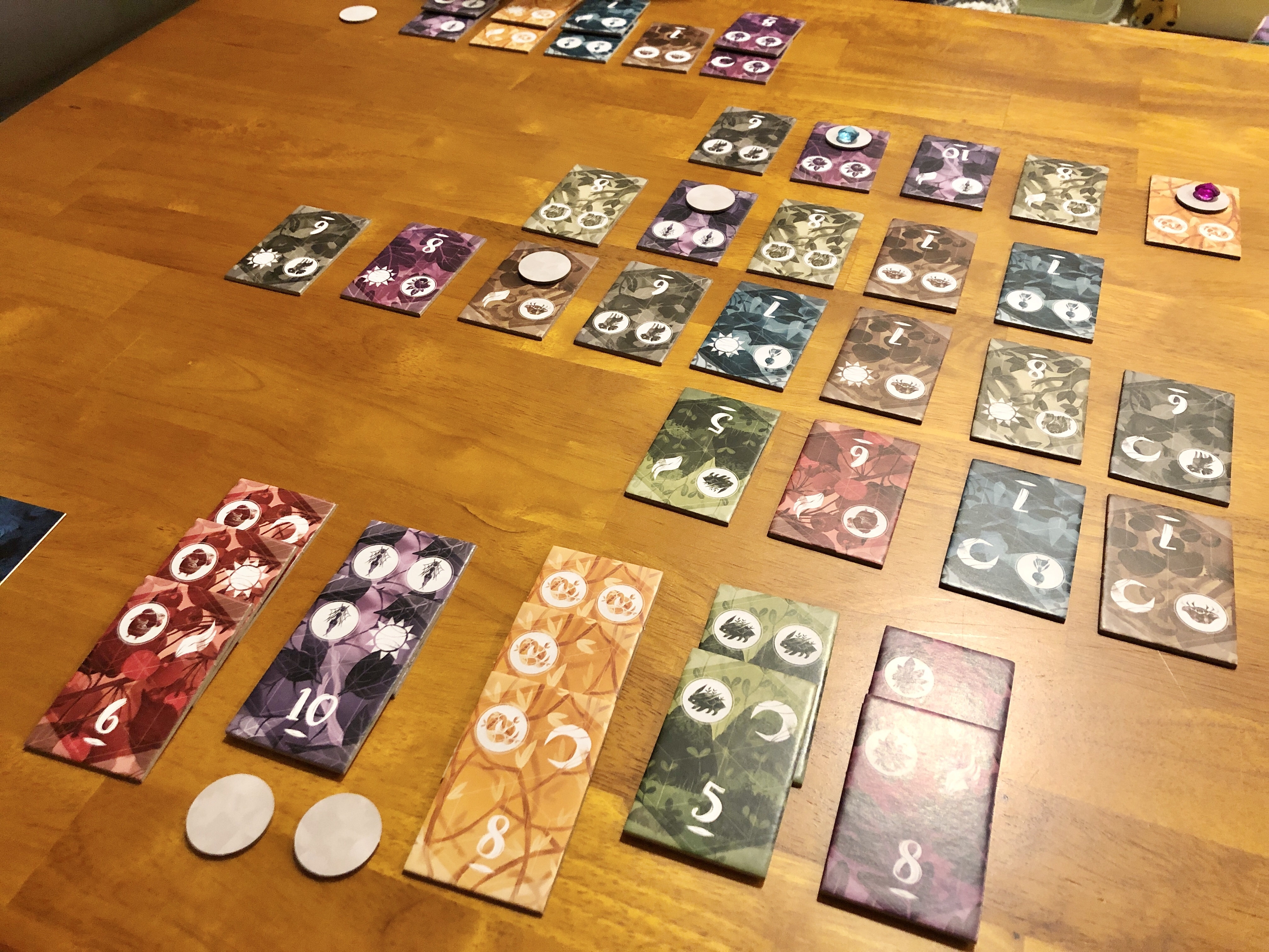 またタイルとトークンがメインのゲームなので、カードメインが多い軽量級ゲームの中でも違った手触りが楽しめるのためとても気に入っています。