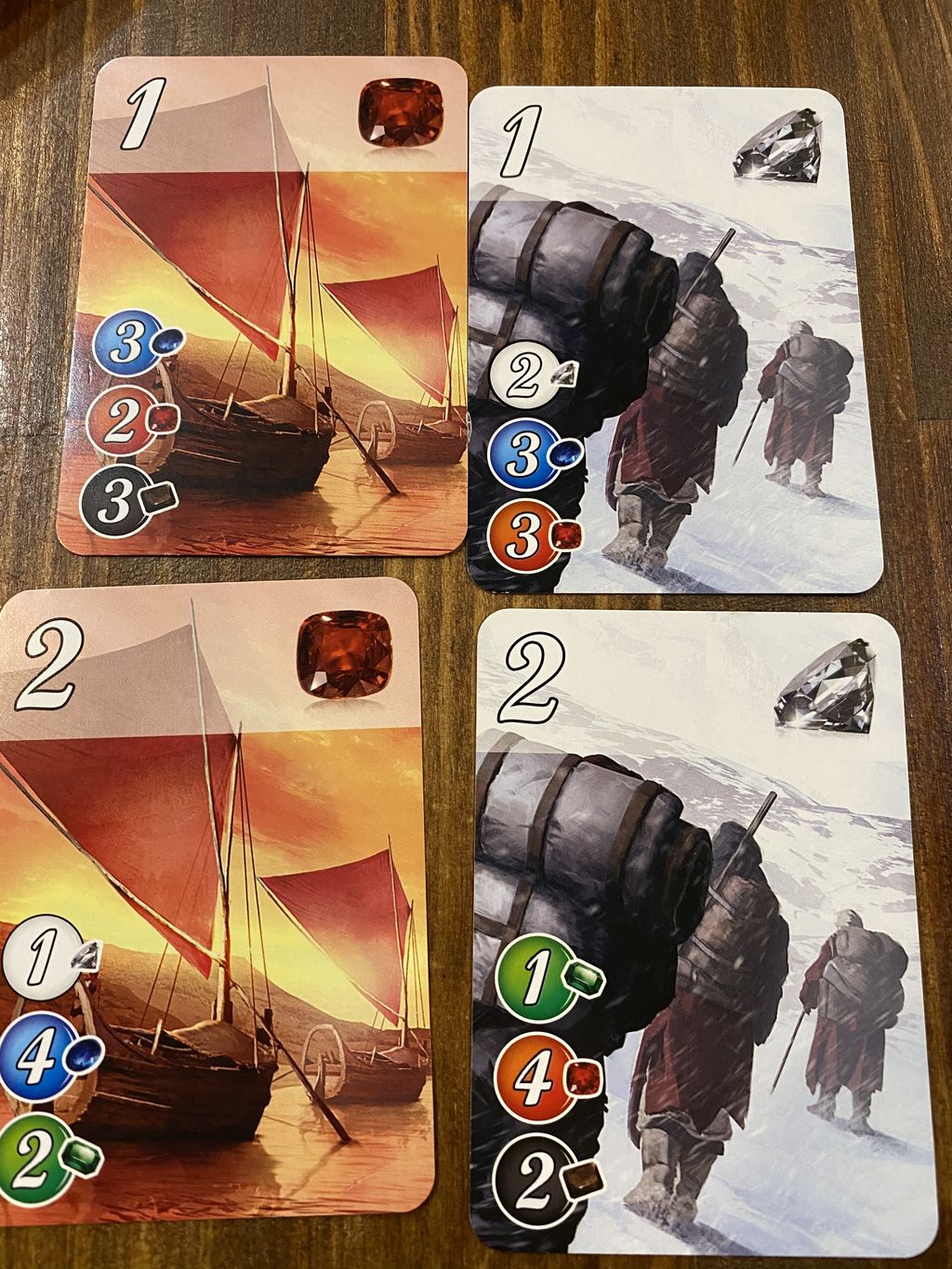 基本的には、同じ色がたくさん必要になる勝利点は、トータルコストに対して勝利点が高くなっています。