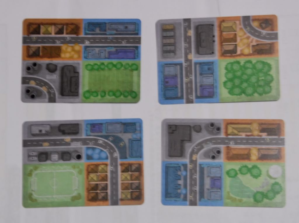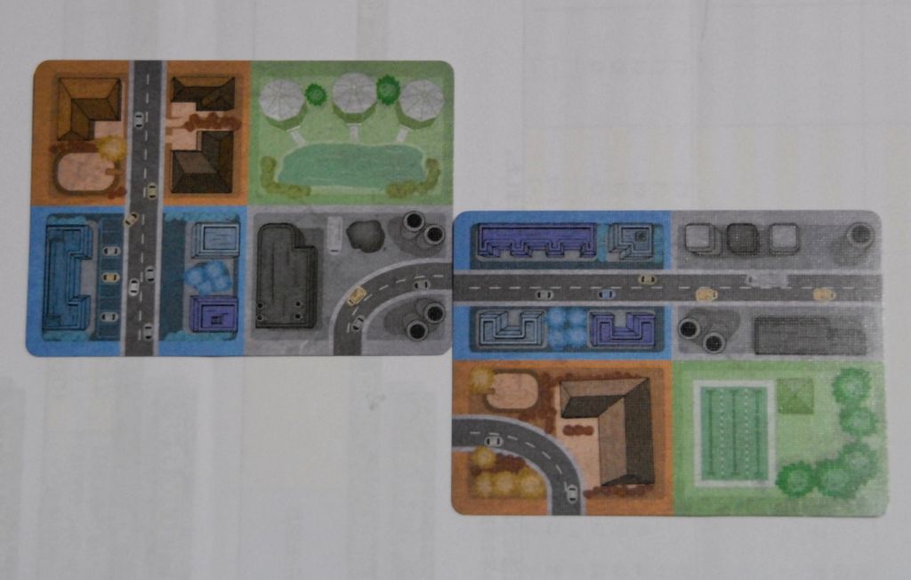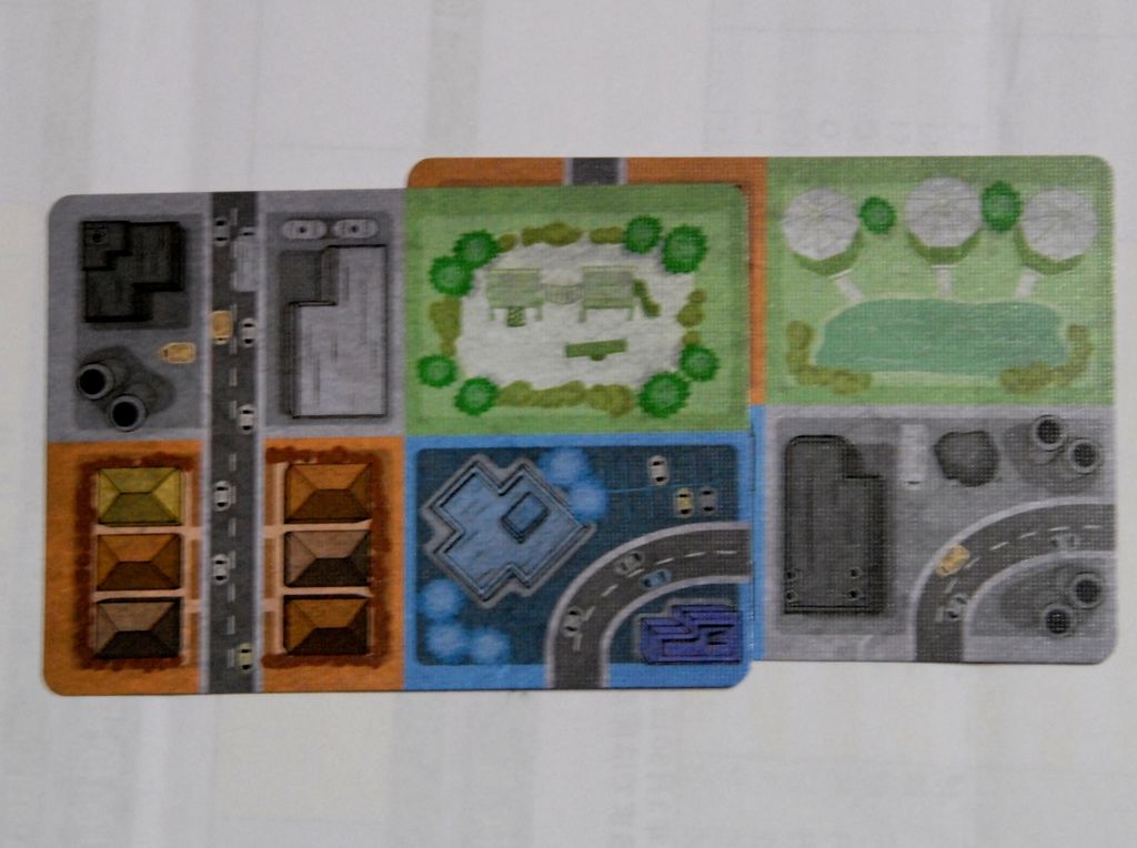 1 カードが全部で18枚あります。片面は街の絵、その裏面には得点条件が書かれています。