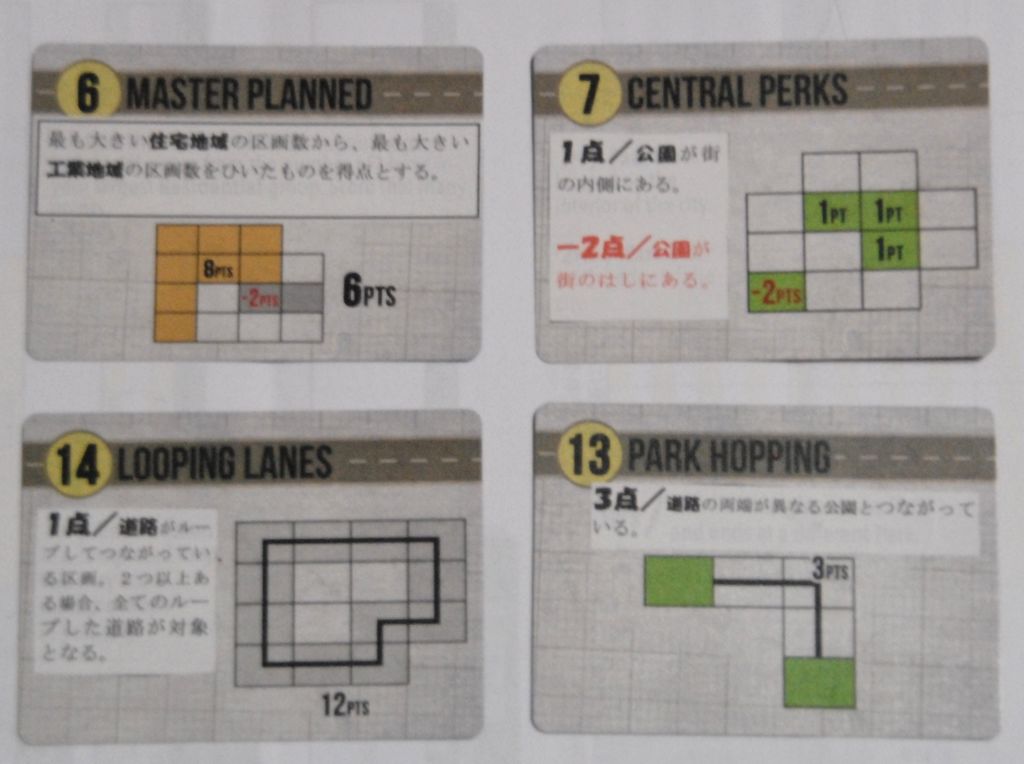 ループしている道路1区画につき1点とか。こんなのが18種類あって、そのうちの3つを使うということです。