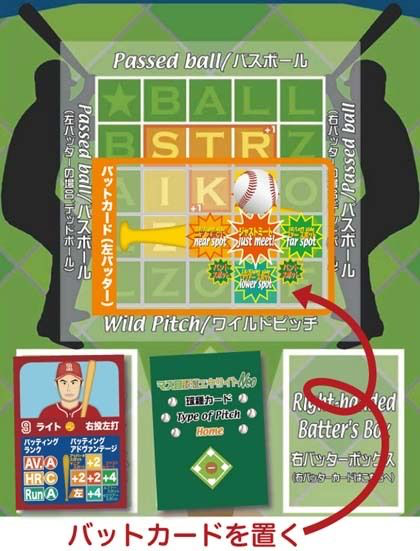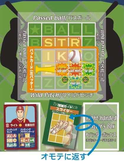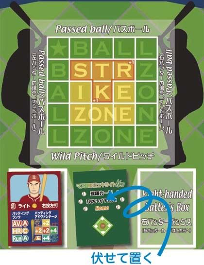 | ピッチャーは投げる球種を決め球種カードを伏せて置きます。 |