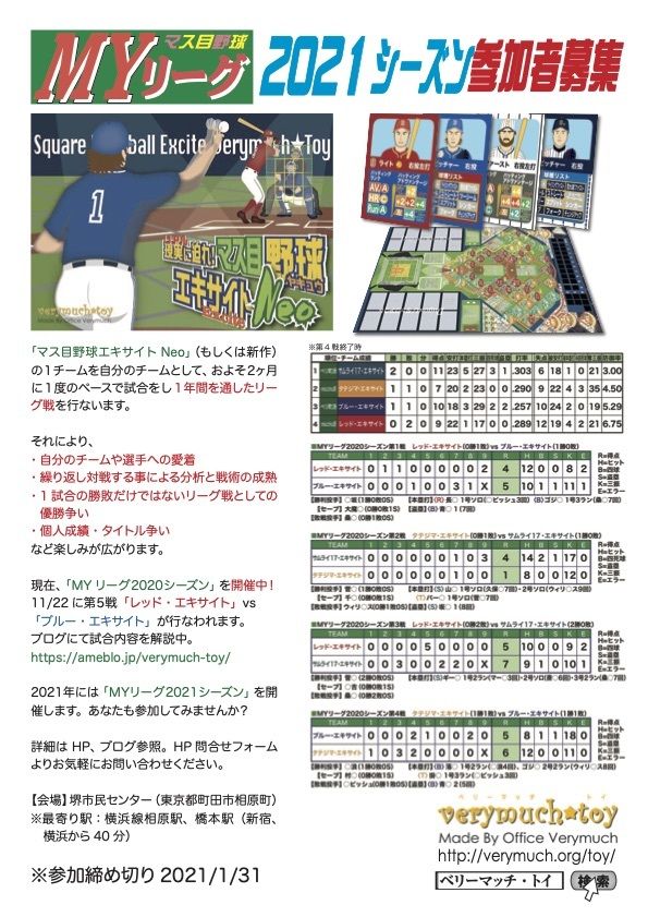 マス目野球エキサイトの1年間通したリーグ戦『MYリーグ2021シーズン』の参加者募集中です。東京都町田市にて(新宿・横浜から40分)。