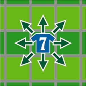 8方向に1マスずつ(ボールを持っていればドリブル)