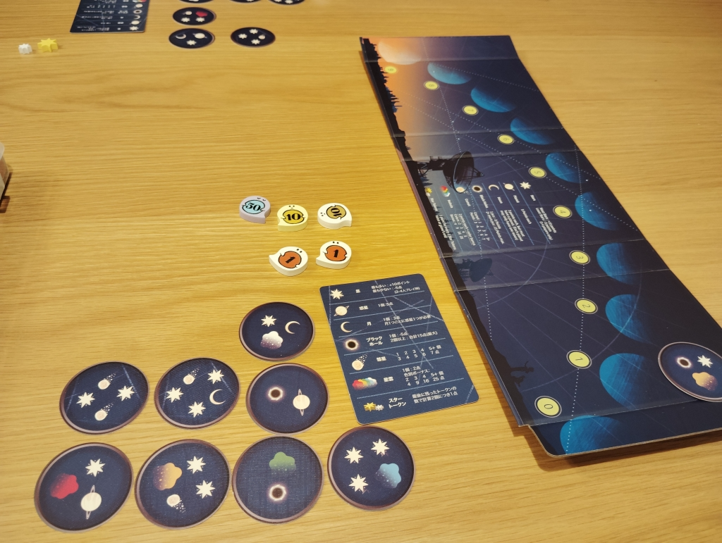 ボードを広げて、夜空カードを配置して移動させていくのも雰囲気があって良かったです。