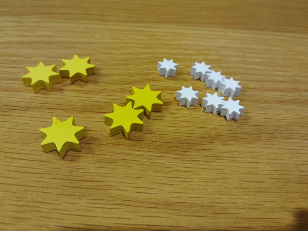 夜空カードで6種類の得点方法、余った星トークンによる得点とあり合計得点が高いプレイヤーが勝ちになります。