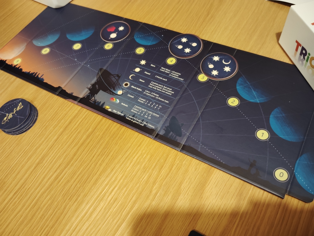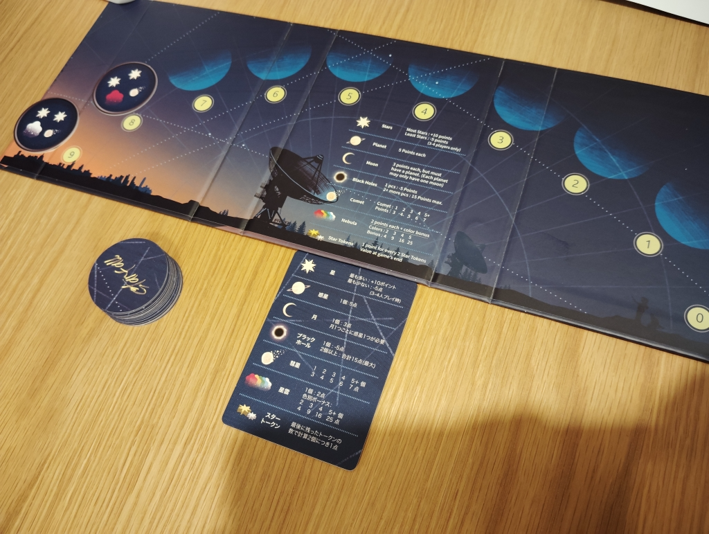2人でも楽しめましたが、3〜4人でも遊べてより夜空カードの獲得タイミングや種類によっては順位争いがあるので、激しい夜空の観測になりそうでオススメです。