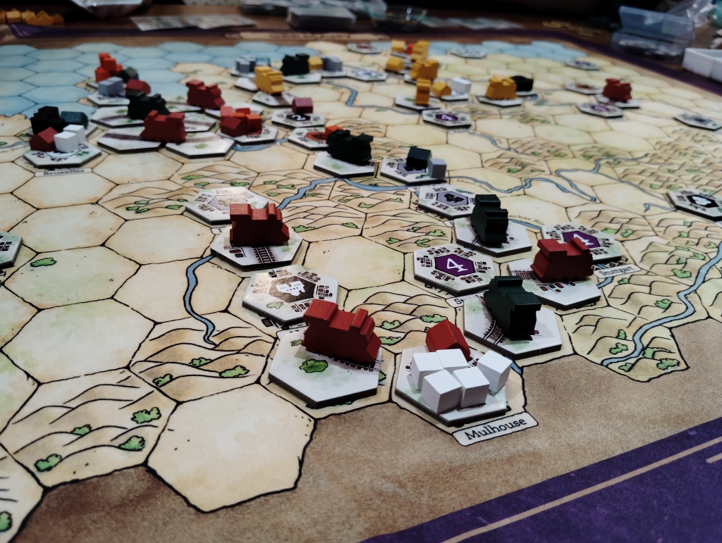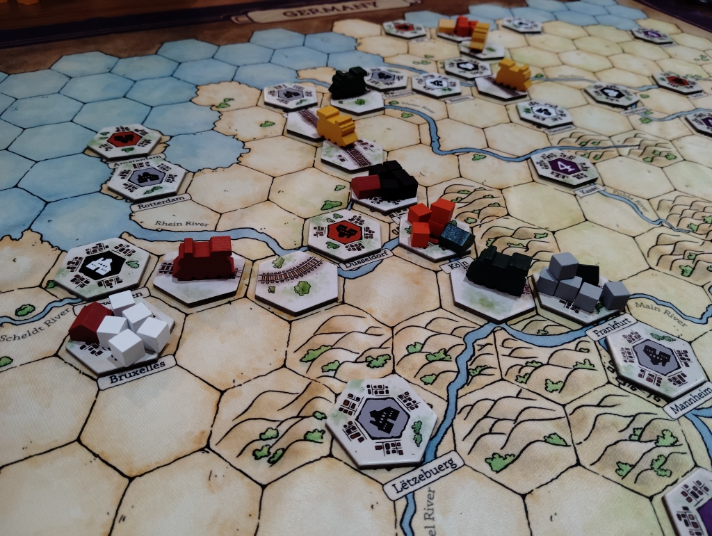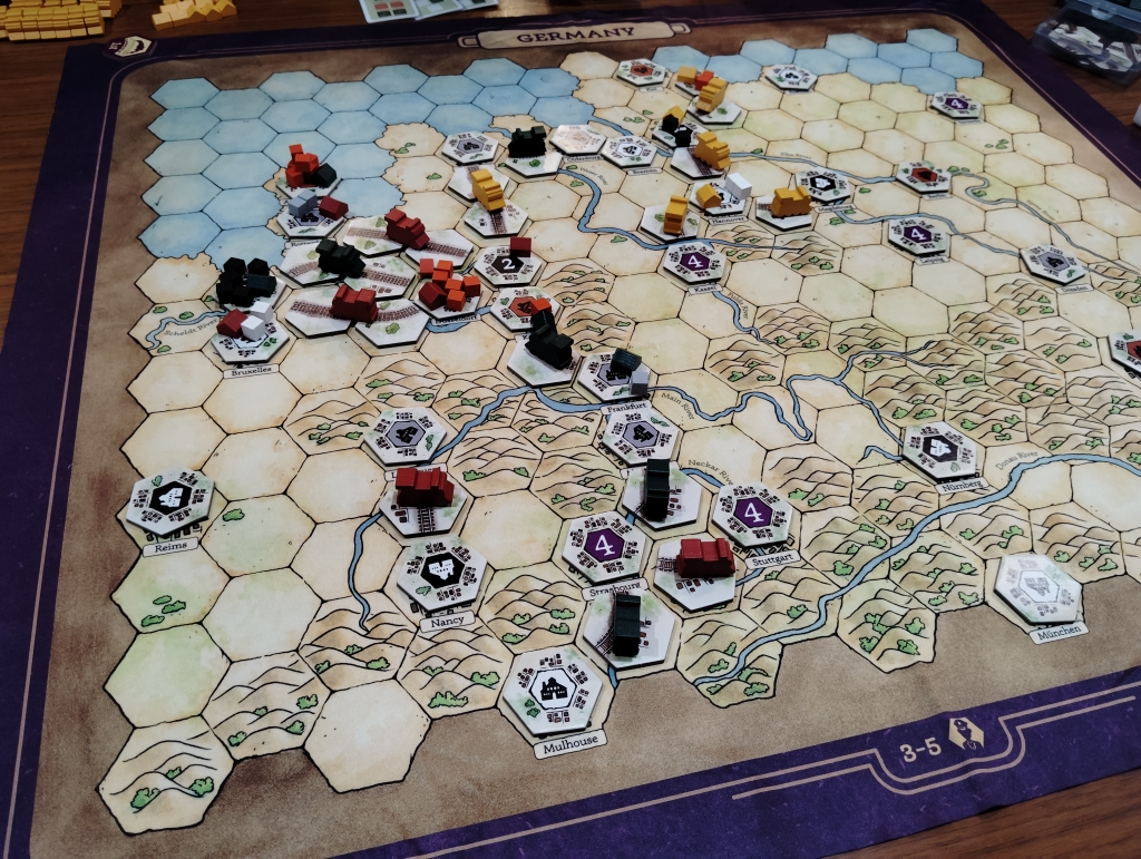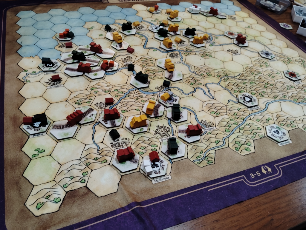 ゲームとしては線路を引いたり工場を建設したりして、物資を運べるようにして契約を達成していき得点を稼いでいくのが目的になります。
