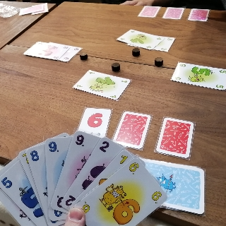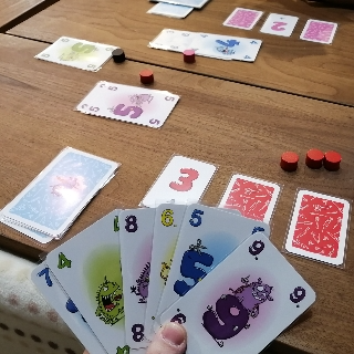 『えっ、今からでも獲得できるトリックがあるんですか?』状態な時に相手の得点を下げるフォローは楽しい。普段とは違うトリックテイキングゲームで、こちらも良き。