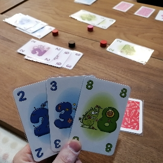 ラウンド開始時に自分の得点カード3枚を好きな順番に伏せて前に伏せます。