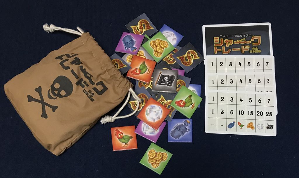 海賊が手に入れたお宝を分配するゲームです。自分が欲しいお宝セットを集めて高得点を狙います。