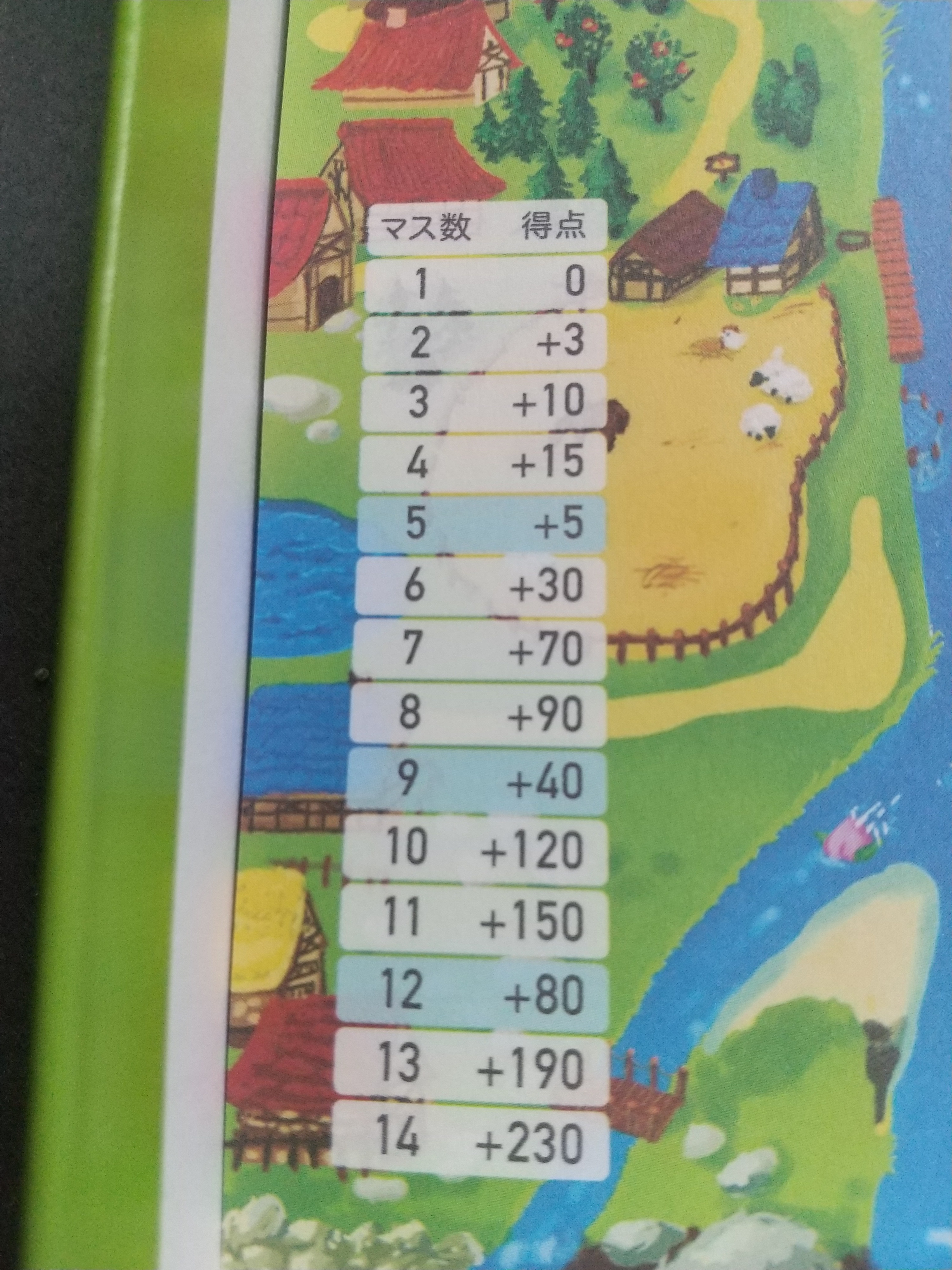 ○サイコロが普通の1-6の目じゃないのが良いですね。期待値はあるけど、いい感じに読めない。終盤の5個振りで1が複数出るとかざらにある。