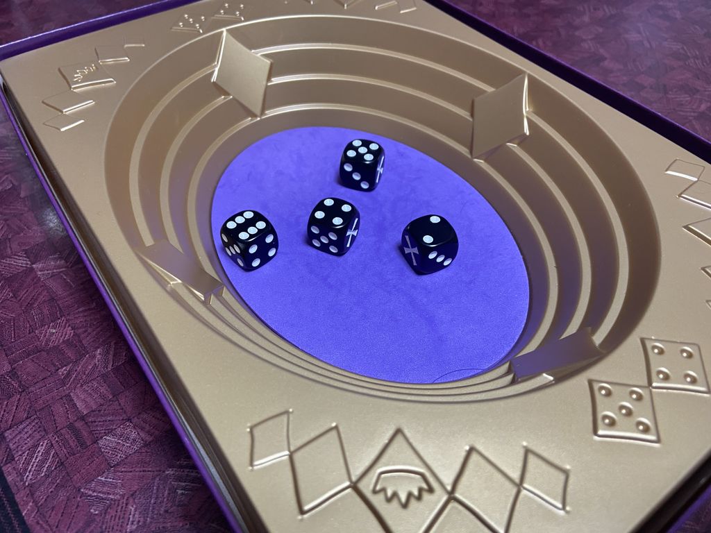 …でもね、そうじゃないんだよ。このサイコロの重み、彫りの深さ、外箱がそのまま盤面になる画期的なデザイン、そして何よりダイスを主役にしたゲームシステム。