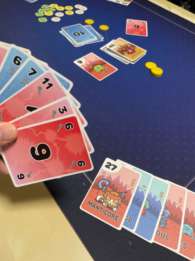 トリックテイクでモンスターを倒すゲームです。数字合計でモンスターを倒すのですが、協力ゲームではないので、あえて倒せなくさせるプレイが横行するゲームです。