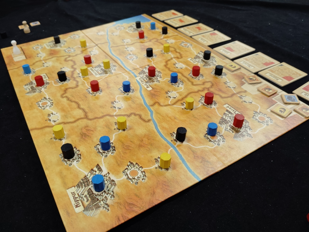 都市国家に商人コマを配置したり、商人コマを移動させ都市国家を跨ぐとその都市国家は影響力が上がり、左隣にある都市国家タイルと場所を交換して影響力の順位を上げます。