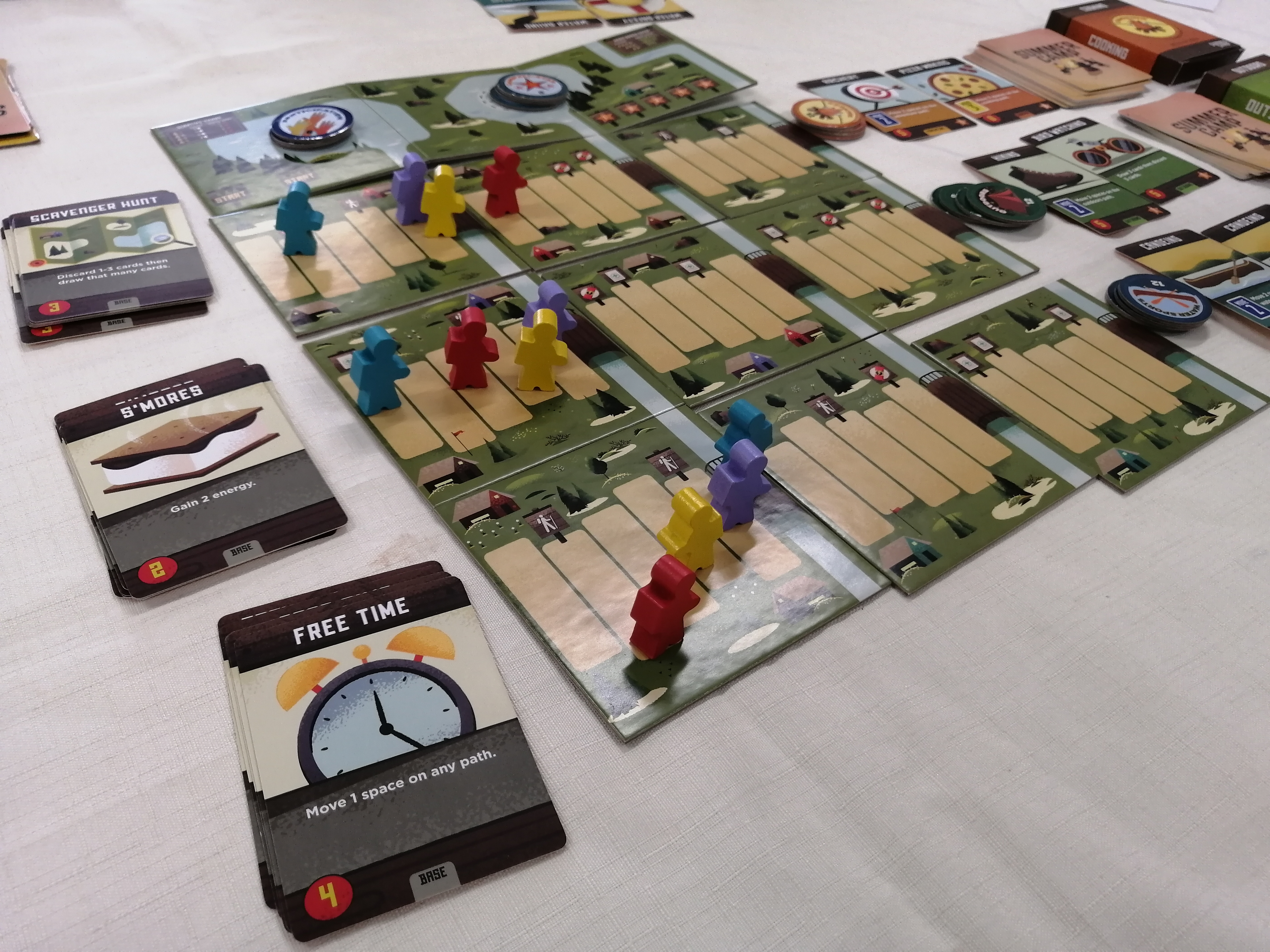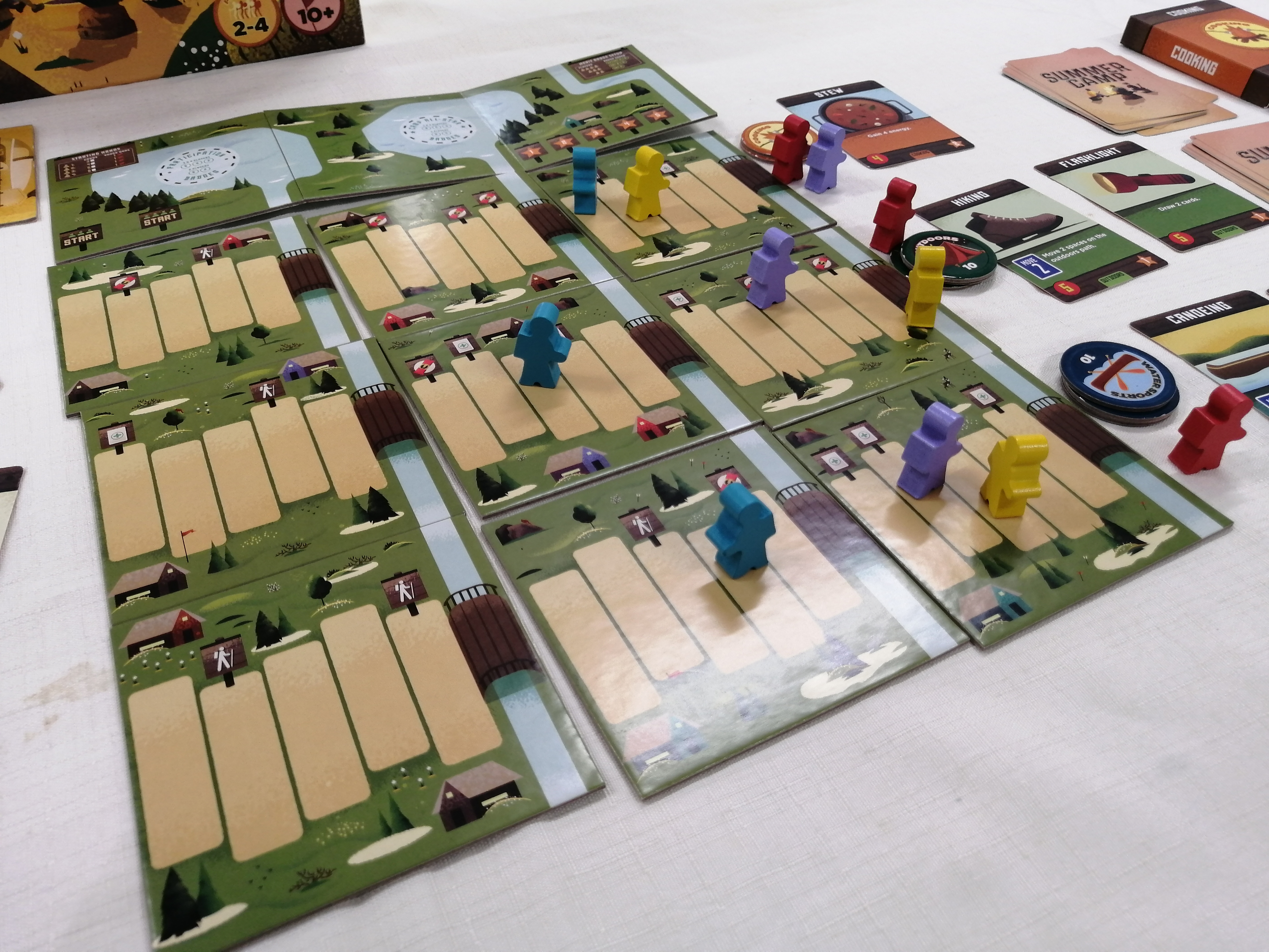 各チェックエリアをすべてのコマが通過するかゴールに辿り着いた、もしくはゴール直前にいるコマの得点。購入したカード点。タイルの得点を合計して一番高いプレイヤーが夏のキャンプを楽しんだで賞です。