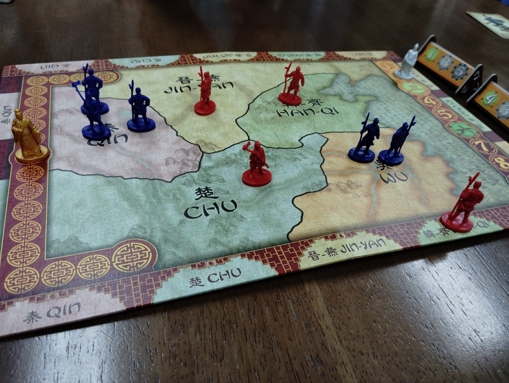 ゲームは9ラウンドで3ラウンド終了時ごとに各地の勢力図を確認して、支配しているプレイヤーはポイントを獲得して自分のコマを支配側に近づけます。
