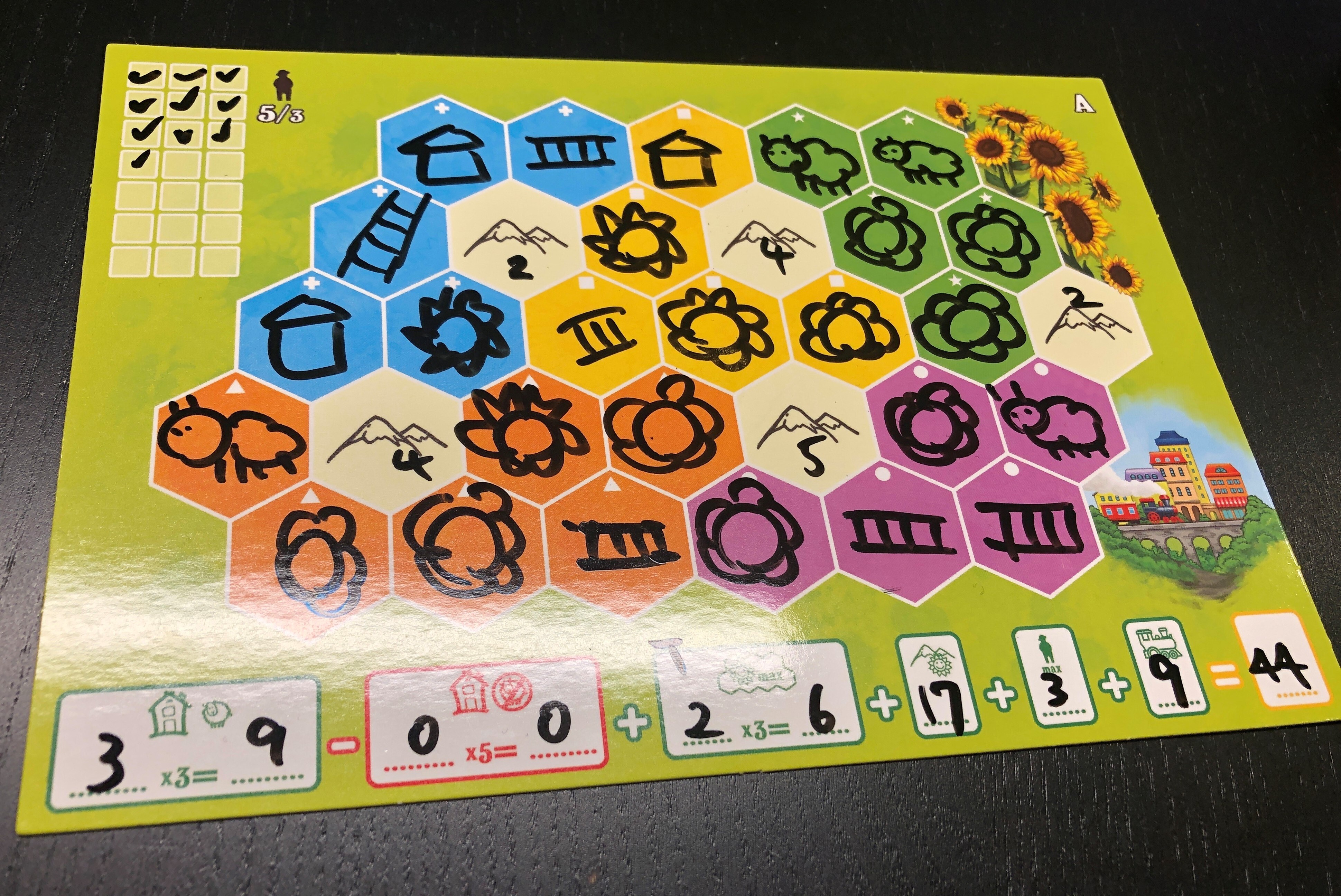 アルペンツィアンは紙ペンなので細かく書き込める。お絵かきするのはアルペンツィアンがいいと思う。サンフラワーバレーはホワイトボードに太めのペン。羊とひまわりのかき分けがけっこう難しい。