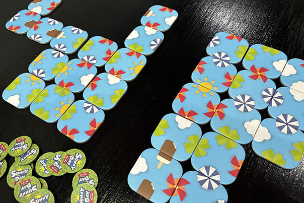 獲得したタイルを自分の場に配置する。自分の場で、繋がったイラストが得点になる。