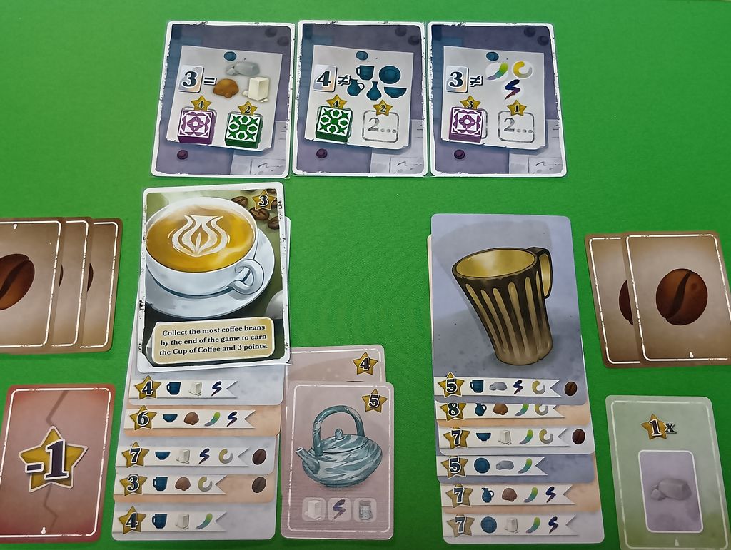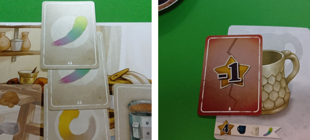 ・釉薬資源:コーヒー豆カードをオートマが獲得又はプレイヤーの作品に△1点カードを配置