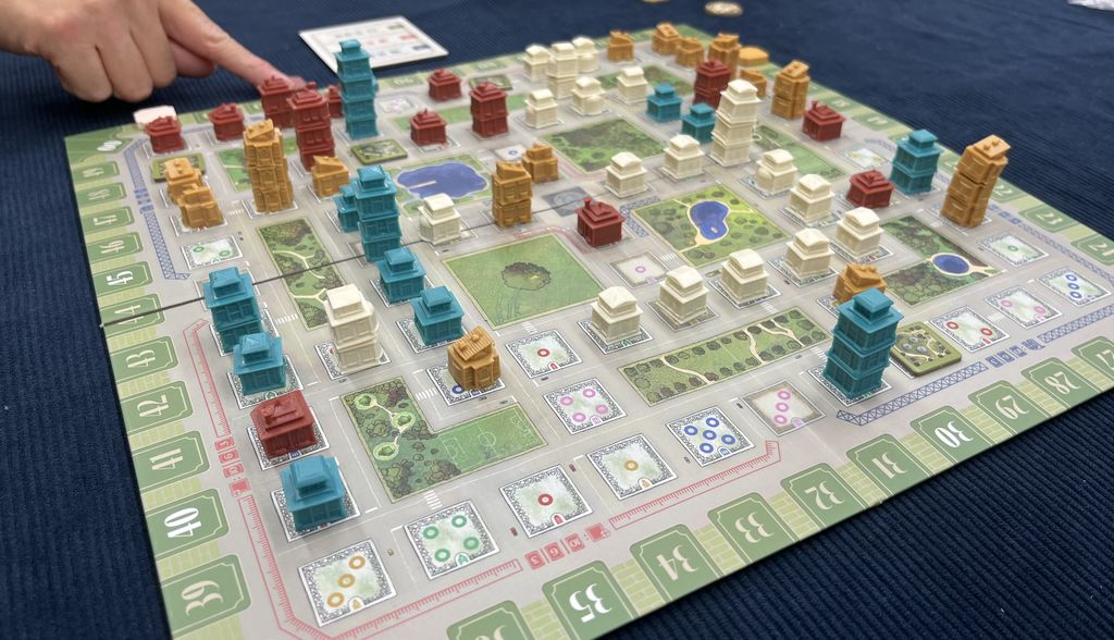 区画内に、より多くの、より高さの高い住宅を建設することを競い合うゲームです。建設した住宅は、すべて得点という形で数値化されます。最も多く得点を稼いだ人の勝ちです。