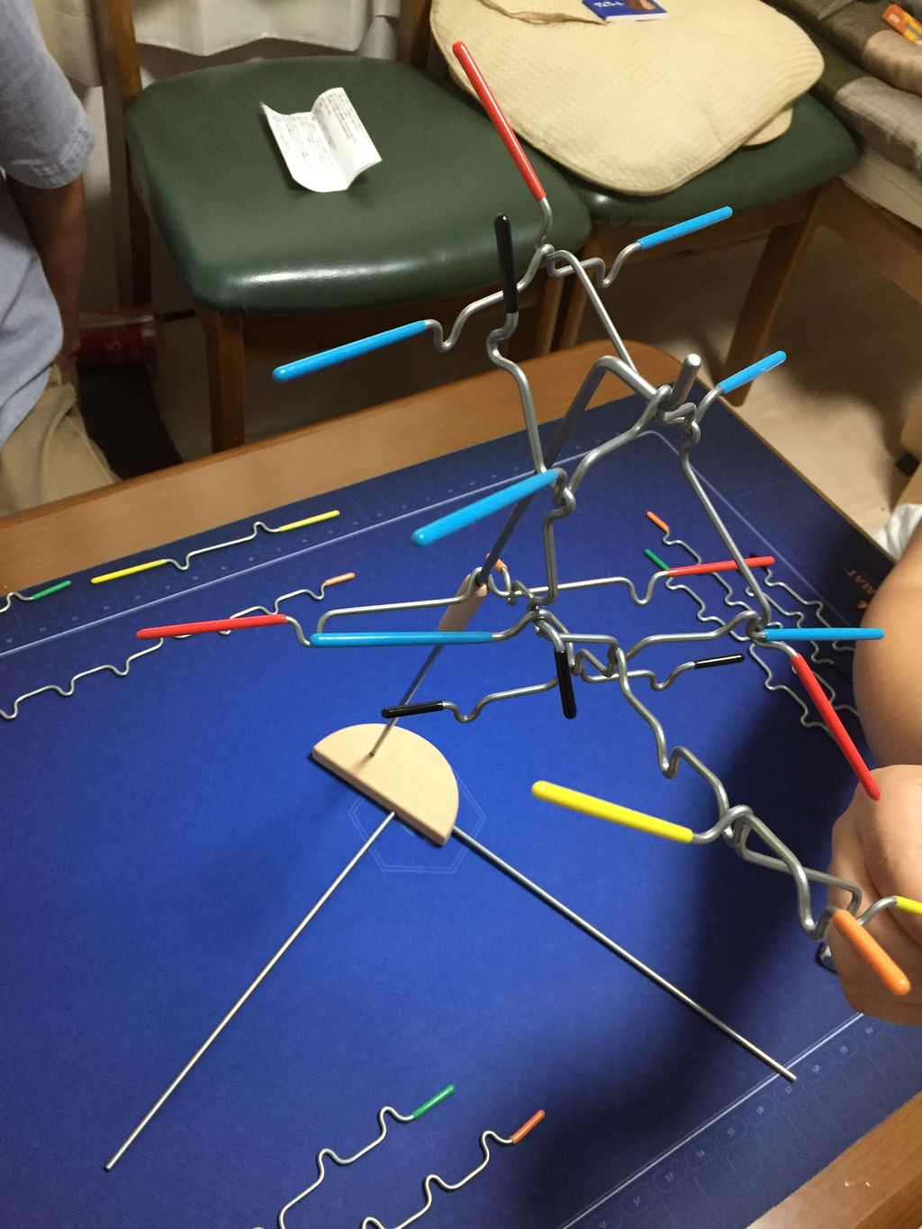 手番ではサイコロを振って、対応するスティックを1つ乗せていく、バランスゲームにありがちなルールです。手元にその色が無かったら他のプレイヤーのスティックを乗せます。