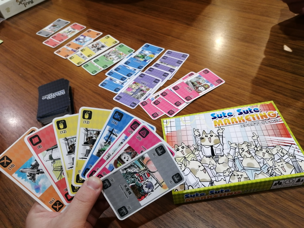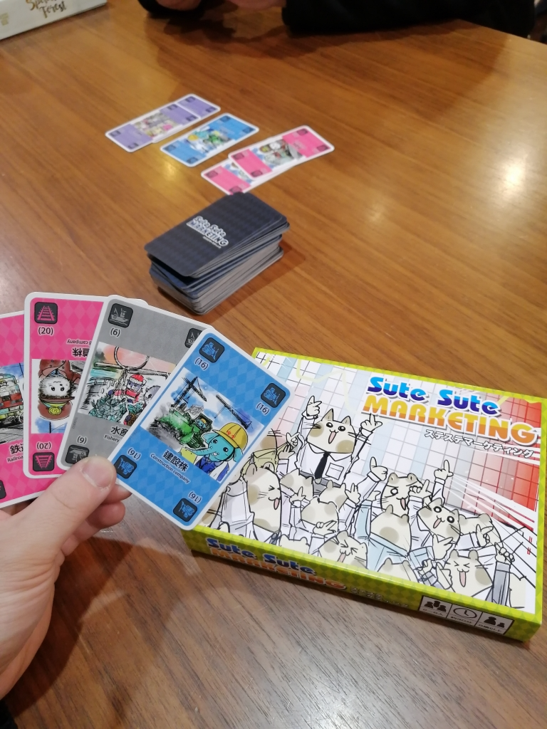 どのカードを場に出していくかを考えながら、他プレイヤーがどの数字で得点しようか考えていかないと得点を獲得するのは難しいですね。和やかなイラストですがゲームはしっかりでした。
