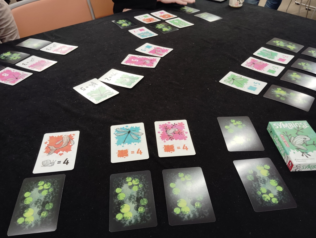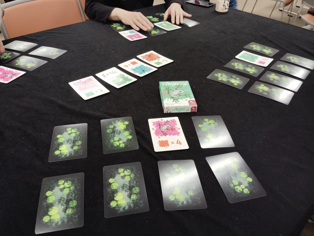 徐々に表向きになっていくので、カウンティングをしつつ、自分は得して両隣にはあまり稼がせないようにするカードを交換して揃えると良い。