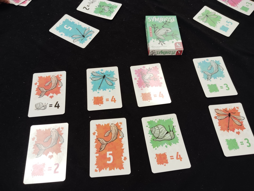 1人8枚のカードを裏向きに配られてから1枚は表向きにして、場には4枚の表向きにされたカードを準備したらゲーム開始。
