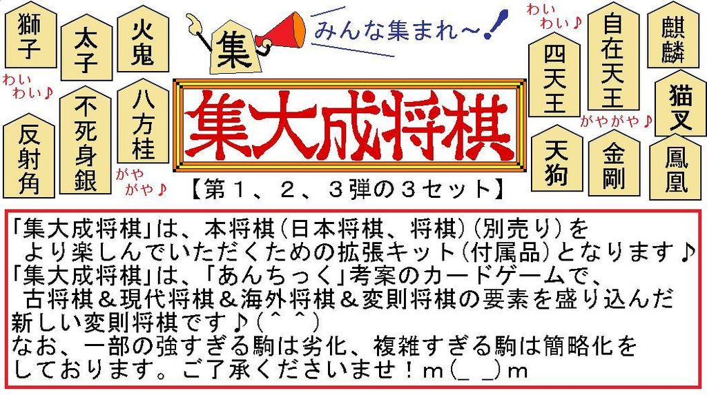 - リプレイ集大成将棋2019古今東西の将棋の駒で遊べる将棋の拡張キット『集大成将棋』【第3弾】を3...2日前の投稿