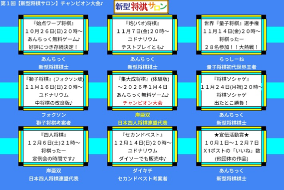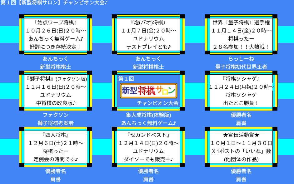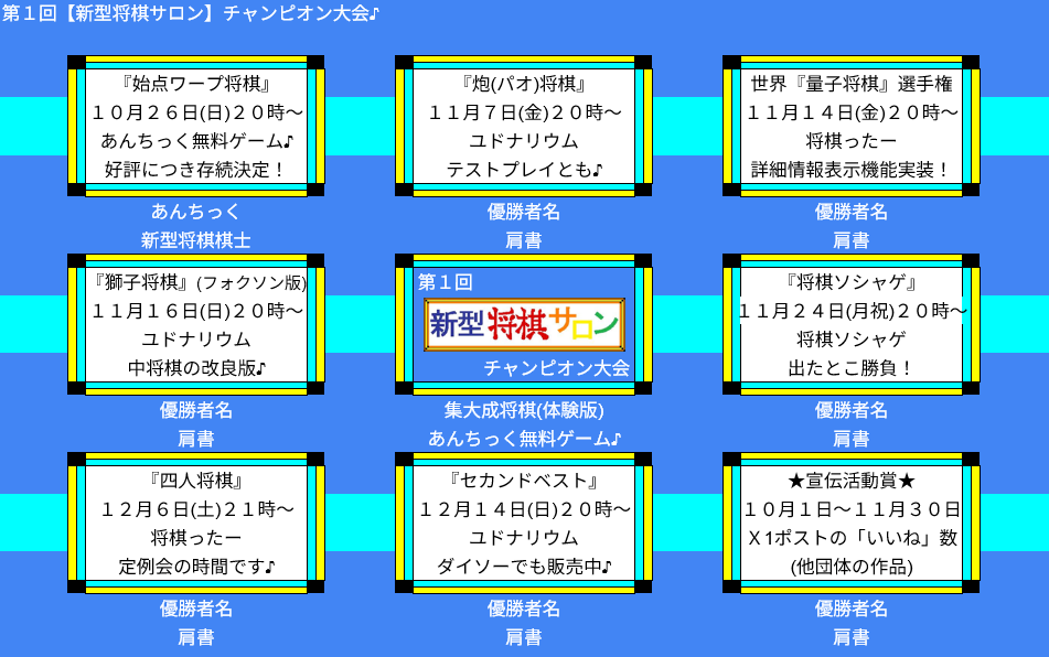 『将棋ソシャゲ』大会、『四人将棋』大会、
