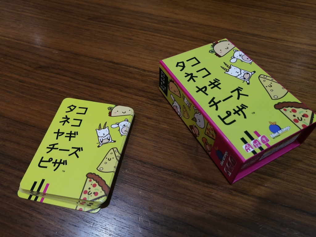 配られたカードは裏向きにして山札にして、順番にタコ→ネコ→ヤギ→チーズ→ピザと宣言しながら時計回りに山札からカードを表向けて出していく。