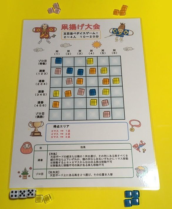 役が出来上がると凧(ガラスタイルの駒)を配置できます♪