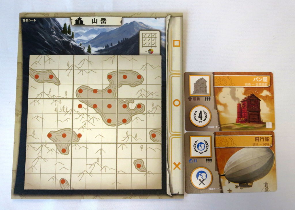 ・〇地域ヘックス(六角形)が印刷されています。灰色は〇未探査地域です。〇前哨基地outpostを置くとそこが自分の〇支配地域になります。
