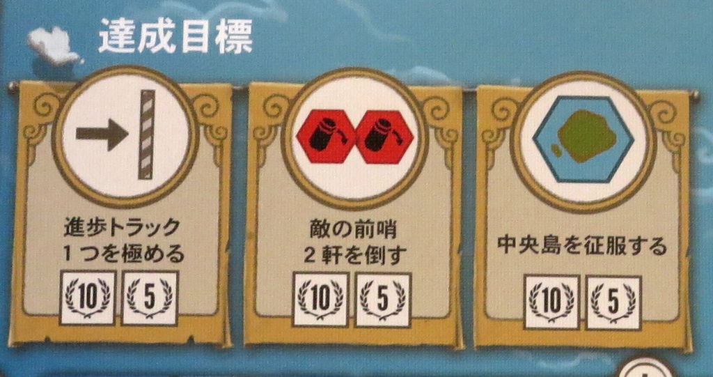 ・メイン・ボードで探求トラックの上方に達成目標が3つあります。1-3人プレイの場合は,・・・