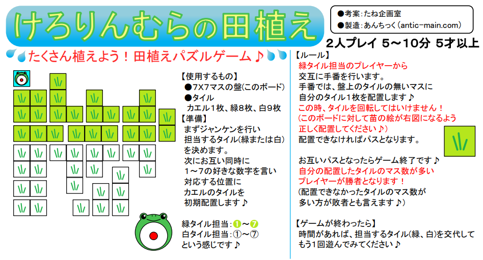 けろりんむらの田植えあんちっくさんのルール/インスト