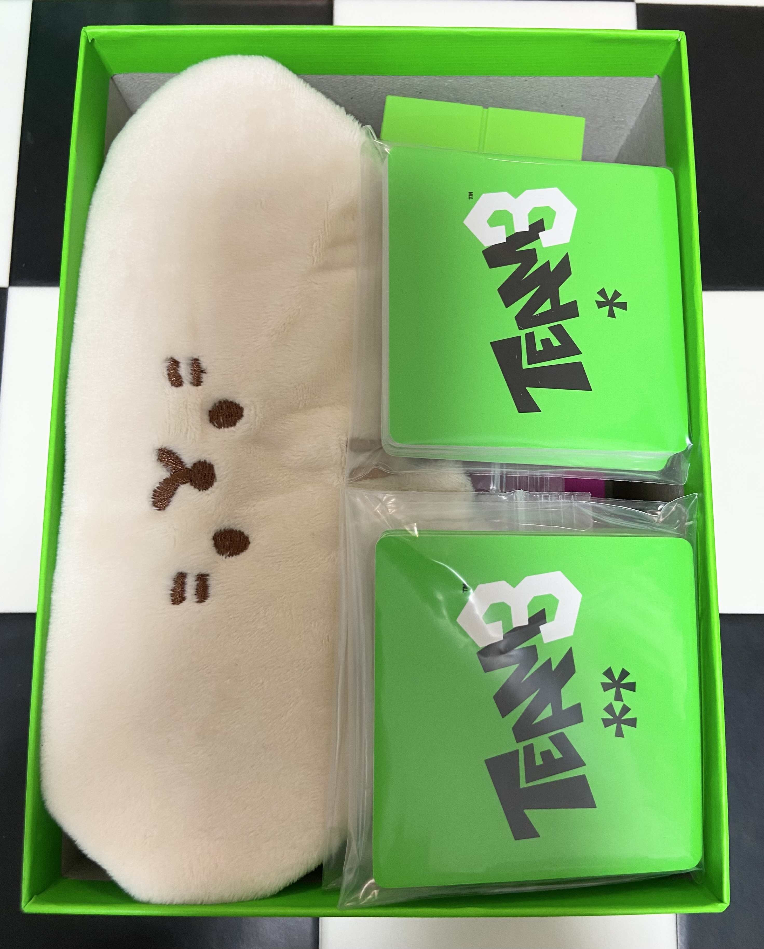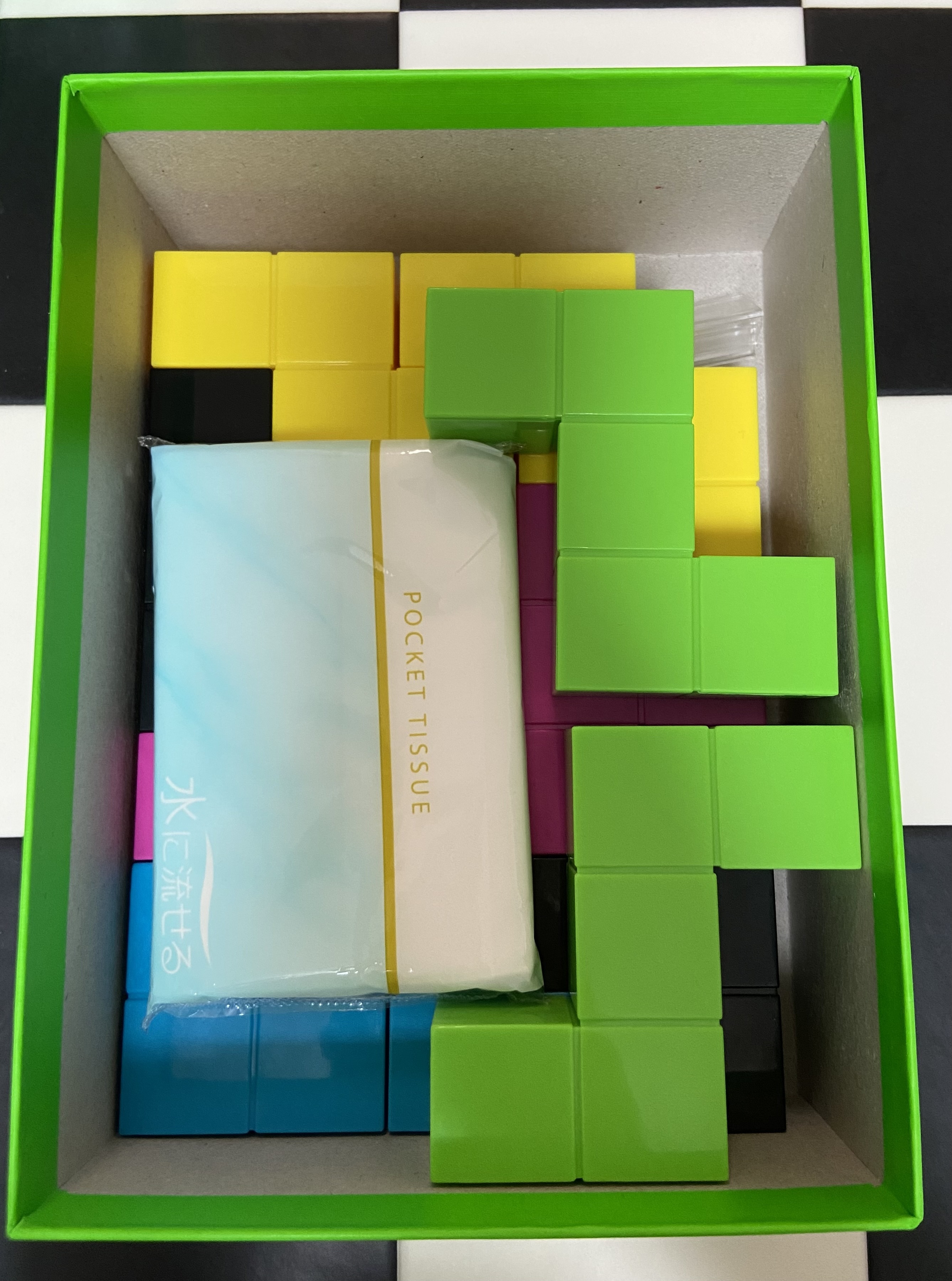 ②余りのZ字を2段目に写真のように置き、空きスペースにポケットティッシュを入れます。ティッシュはアイマスク使用時に、目とアイマスクの間に挟んで使います(衛生面のため)