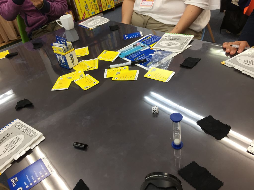 最後まで合ってたら得点、や、うまいと思ったものを書いたプレイヤーに得点が入ったりします。この辺の得点の入れ方はルールにありますが、結構みんな適当です(そもそも得点を入れないこともあります)