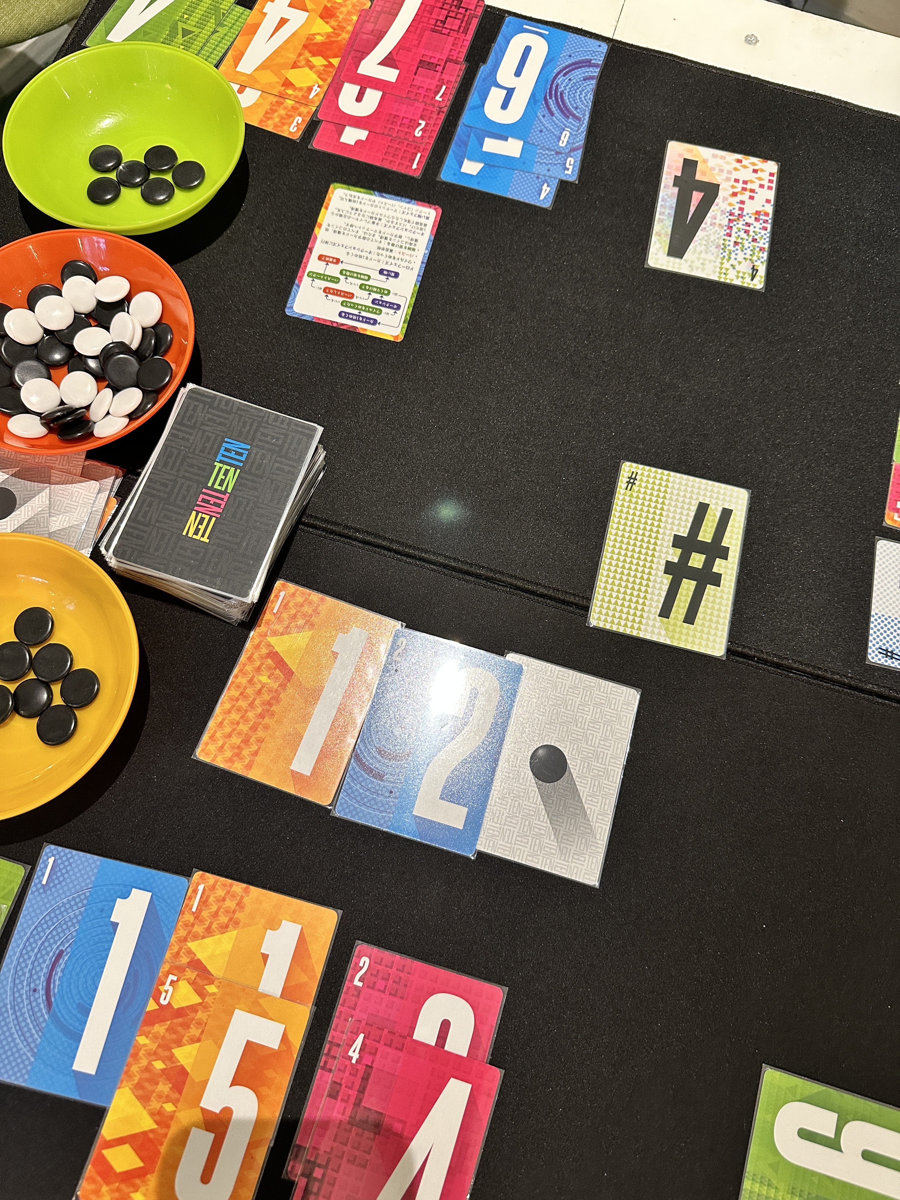 そのために、カード集めで1枚ずつめくるチキンレース(10を超えるとバースト)をしたり、ワイルドカード(色や数字が自由に決められるカード)をオークションで落札したり、公開されたカードを買ったりしてランを作っていきます。