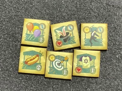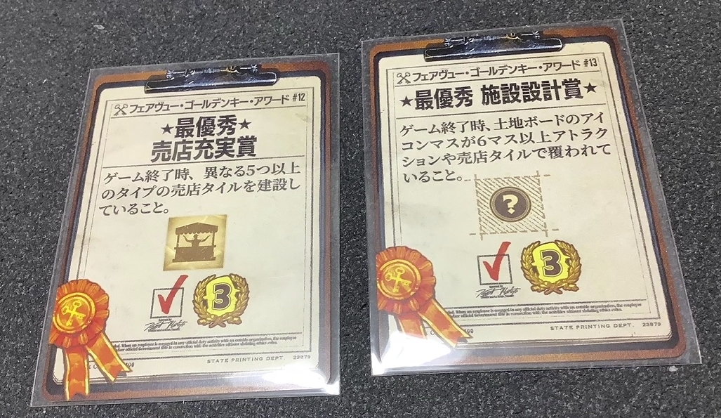 タイル配置のパズルゲームとしては新しく接触は角のみという縛りの中(オーディンの祝祭もそうでしたね・・・)悩ましい選択と限られた手番でいかに収入を上げてアトラクションを建てられるか、売店も意外とバカにできません。
