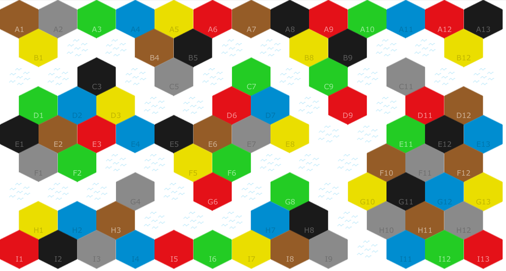 3つ目は南I7と迷ったけど、カオマジが中央から北征してきて隣接できることを期待して置いた(南は隣接できなそう)。他は下記の通り。