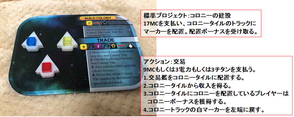 ゲーム開始時、盤面には11枚あるコロニータイルからプレイヤー数+2枚(2人プレイ時は5枚)が並べられます。