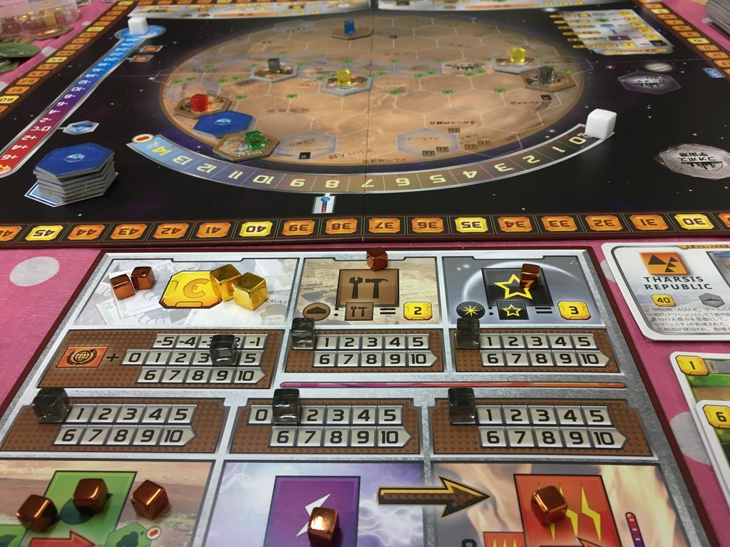 思ったよりルールは簡単だったと思うけど、点数の取り方がよく分からず、ボード度外視で、カードと温度、酸素に特化してみた。