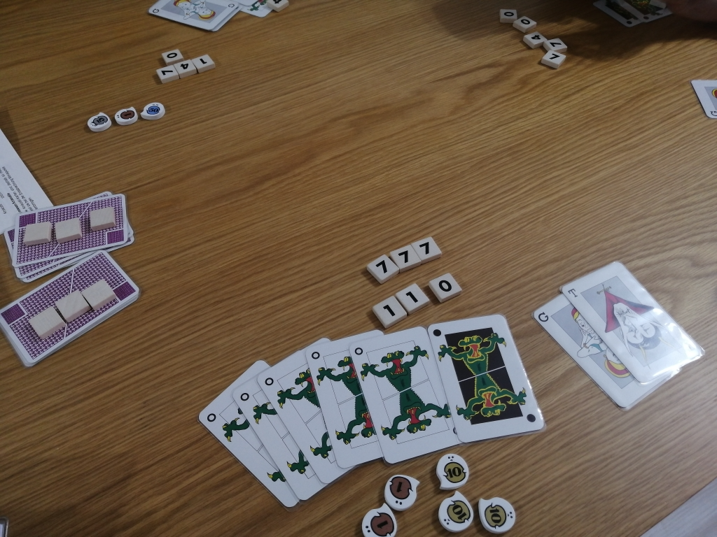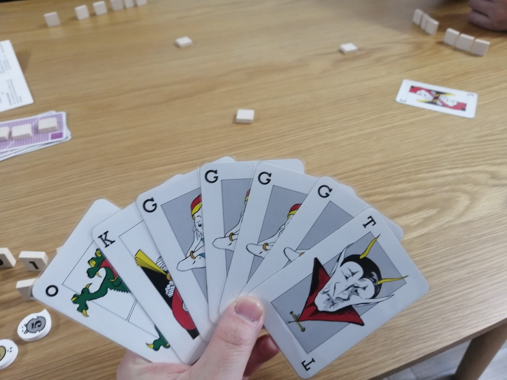 チップは得点となるので、自分が数字の高いチップを出した時にはトリックを獲得したい。