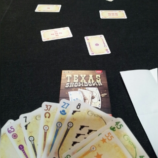 6人でプレイ。スートが7~8種類ぐらいあったかな。スートごとに枚数も違い数字は0~74とあります。