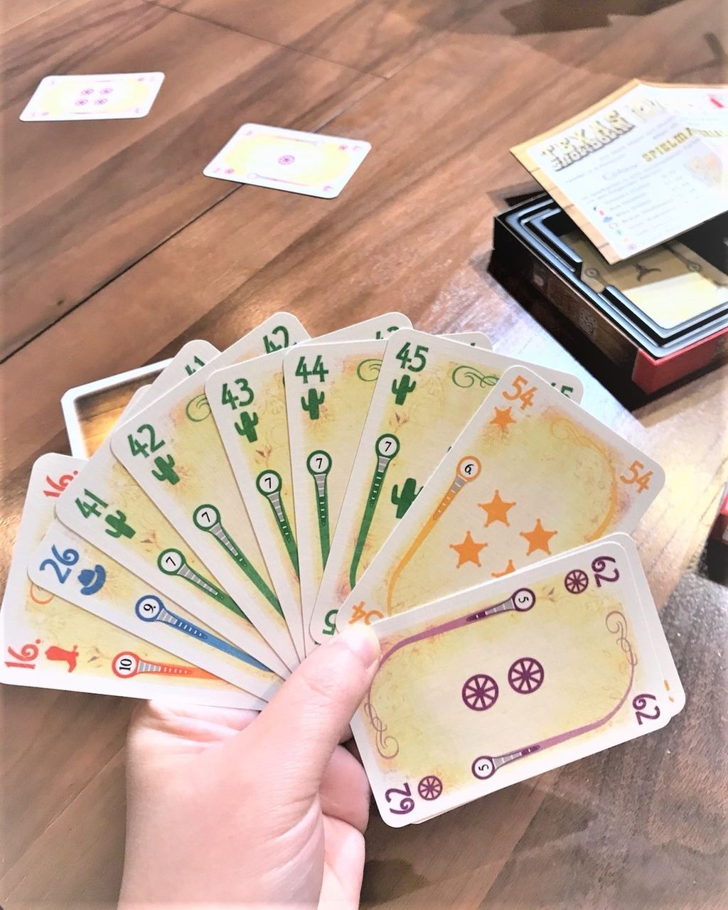 プレイ感的なところでウェスタンは感じないのですが、このスートは何枚カードがあるのかとか、そのスートの中で何番目に強いカードかとかが情報としてカードに全部載っているので、その情報量だけでもうわくわくしました。
